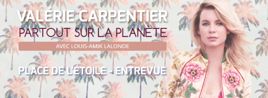 L'auteure, compositrice et interprète québécoise Valérie Carpentier invitée sur la radio Fréquence-Plaisir dans le cadre de l'émission "Partout sur la Planète" dans le segment "Place de l'Étoile" animée par Louis-Amik Lalonde. Elle y est présente son dernier opus "Pour Rosie" au son electro-pop-romantique-lounge qui fait suite à "L'été des orages", écoulé à plus de 55 000 exemplaires.